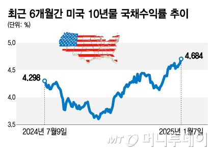트럼프 당선인이 공약해온 세금 감면으로 미국 정부의 재정적자가 확대돼 국채 발행이 늘어날 것이라는 전망도 국채수익률이 오르는 원인으로 지목된다.