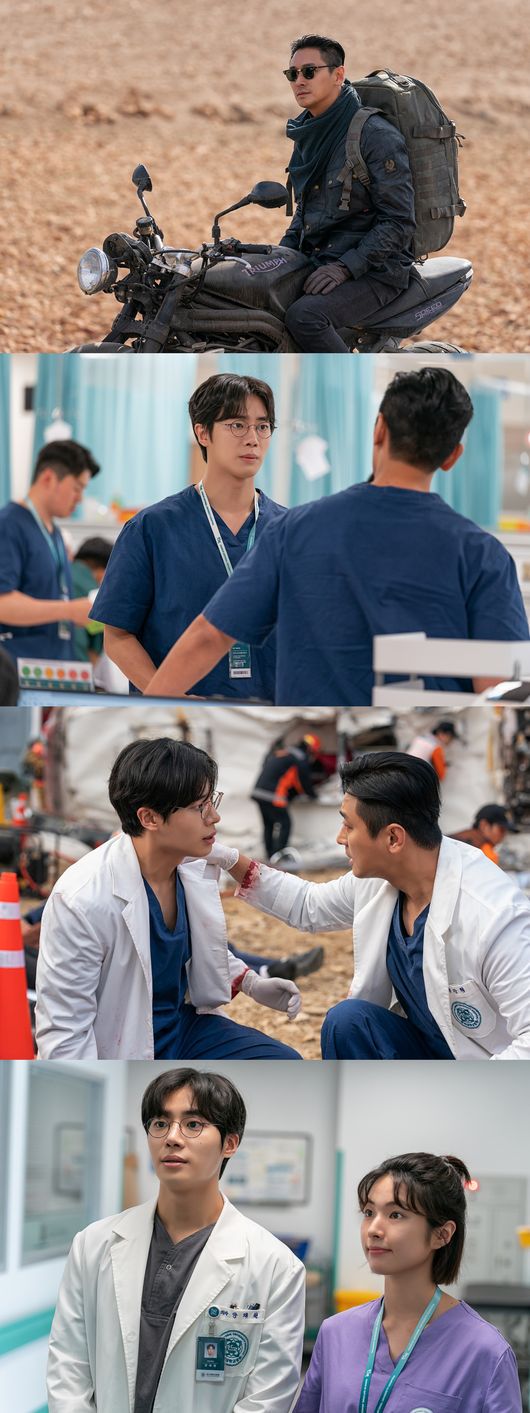 앞서 베일을 벗은 티저 포스터와 예고편이 화제를 모은 가운데, 이날 공개된 캐릭터 스틸은 ‘팀 중증’의 거침없는 활약을 기대케 한다. 먼저 불의에 굴하지 않는 천재 외과의사 ‘백강혁’의 독보적 아우라가 시선을 사로잡는다. 검게 그을린 거친 얼굴로 오토바이를 탄 백강혁. 사람을 살리기 위해서라면 전쟁터도 마다하지 않는 그의 범상치 않은 행보와 숨겨진 과거에 대한 궁금증을 높인다.