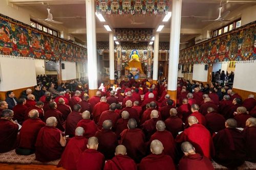 불교 승려들이 8일 다람살라의 달라이 라마 사원에서 중국 남서부 티베트 지역에서 발생한 규모 7.1의 강진 희생자와 생존자들을 위해 기도를 올리고 있다. 다람살라 AFP 연합뉴스 |