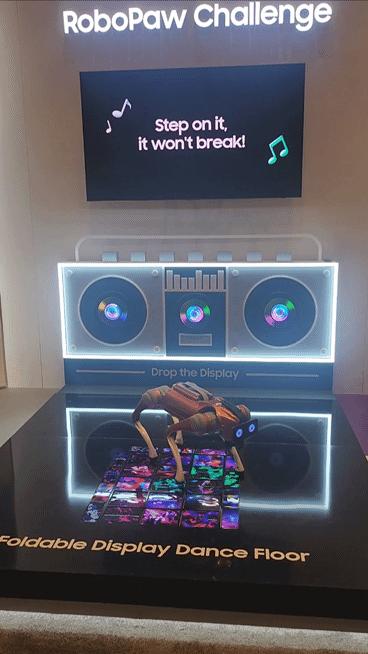 7일(현지시간)부터 10일까지 열리는 CES에서 삼성디스플레이는 미국 라스베이거스 앙코르 호텔에서 거래선을 위한 부스를 꾸렸다. 삼성디스플레이는 부스 앞에는 폴더블 디스플레이의 내구성을 테스트하는 로봇 강아지가 있다. 로봇 강아지가 폴더플 디스플레이 위해서 음악에 맞춰 춤을 춘다. 강아지는 춤을 추면서 폴더블 디스플레이 위에서 뛴다. 이는 폴더블 디스플레이가 얼마나 내구성이 좋은지를 거래선에게 보여주기 위해 만들어졌다.