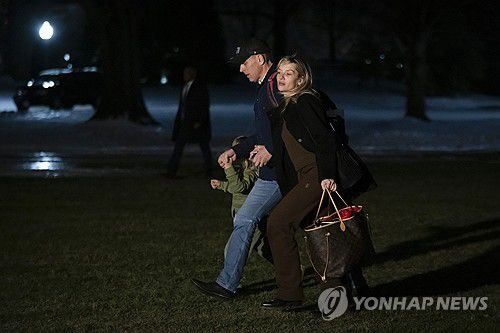 아내 멜리사, 아들 보와 함께 백악관에 들어서는 헌터 바이든 |