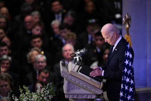 9일(현지시간) 워싱턴 DC의 국립 대성당에서 열린 지미 카터 전 미국 대통령 장례식장에서 추도사를 낭독하는 조 바이든 미국 대통령.(사진=AFP) |