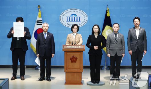 (서울=뉴스1) 김민지 기자 = 추미애 더불어민주당 윤석열내란진상조사단 단장과 소속 의원들이 10일 오전 서울 여의도 소통관에서 이진우 전 수방사령관이 계엄 대비 비밀조직 '수호신 TF'를 운영하고 12·3 계엄 당시 국회로 출동했다는 의혹 관련 기자회견을 하고 있다. 2025.1.10/뉴스1
