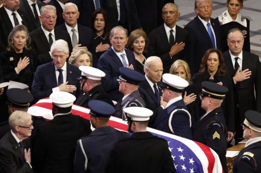 바이든 대통령은 이날을 ‘국가 애도의 날’로 선포했다. 모든 연방기관이 문을 닫았고 뉴욕증권거래소(NYSE)와 나스닥시장도 휴장했다. 월스트리트저널(WSJ)은 새 정부 출범 직전 폭풍전야 상황에서 치러진 이번 장례식을 “정치적 긴장감 속에서도 엄숙한 휴식을 제공한 순간”이라고 표현했다. 퇴임 후 인권 및 민주주의 강조, 기아 퇴치 등에 헌신한 카터 전 대통령의 영면을 위해 워싱턴 정계의 극심한 정치적 반목 또한 일시적으로나마 멈췄다는 뜻이다.