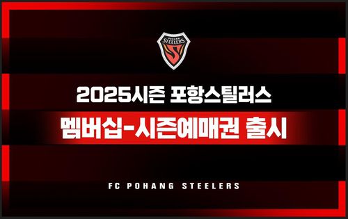 (서울=연합뉴스) 이영호 기자 = 프로축구 K리그1 포항 스틸러스가 2025시즌 멤버십과 예매권 판매를 시작한다고 11일 밝혔다.