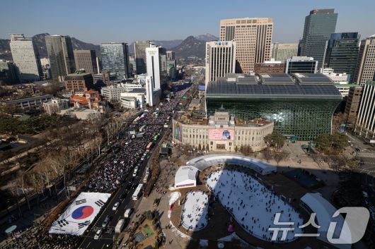 (서울=뉴스1) 이승배 기자 = 자유통일당·대한민국바로세우기국민운동본부 구성원들이 11일 오후 서울 세종대로 네거리 인근에서 윤석열 대통령 탄핵 반대 집회를 하고 있다. 2025.1.11/뉴스1