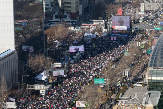 (서울=뉴스1) 이승배 기자 = 자유통일당·대한민국바로세우기국민운동본부 구성원들이 11일 오후 서울 세종대로 네거리 인근에서 윤석열 대통령 탄핵 반대 집회를 하고 있다. 2025.1.11/뉴스1photolee@news1.krCopyright ⓒ 뉴스1. All rights reserved. 무단 전재 및 재배포, AI학습 이용 금지.