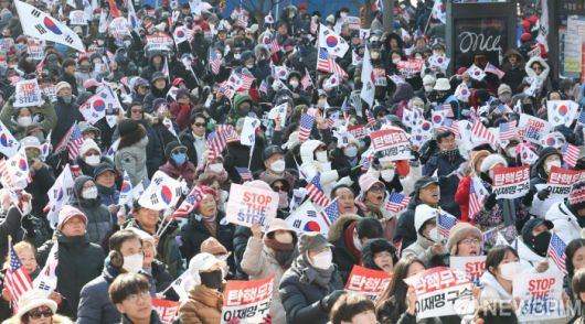 [서울=뉴스핌] 최지환 기자 = 자유통일당·대한민국바로세우기국민운동본부 등 보수단체 회원들이 11일 오후 서울 세종대로 네거리 인근에서 윤석열 대통령 탄핵 반대 집회를 하고 있다. 2025.01.11 choipix16@newspim.com