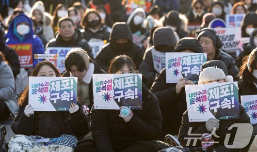 (서울=뉴스1) 이승배 기자 = 11일 오후 서울 종로구 광화문 인근에서 열린 윤석열 즉각퇴진 사회대개혁 비상행동 6차 시민대행진에서 참가자들이 윤석열 대통령 퇴진 등을 촉구하고 있다. 2025.1.11/뉴스1
