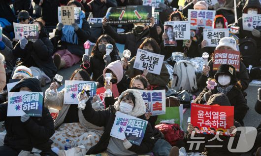 (서울=뉴스1) 이승배 기자 = 11일 오후 서울 종로구 광화문 인근에서 열린 윤석열 즉각퇴진 사회대개혁 비상행동 6차 시민대행진에서 참가자들이 윤석열 대통령 퇴진 등을 촉구하고 있다. 2025.1.11/뉴스1