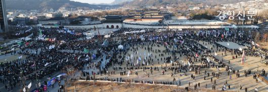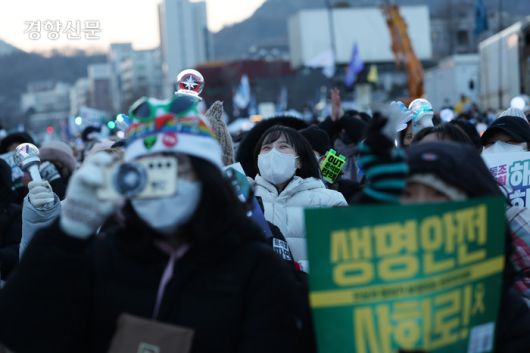 11일 서울 광화문 인근에서 ‘윤석열 즉각 체포 퇴진! 사회대개혁! 6차 범시민총궐기대회’가 열리고 있다. 정효진 기자 |