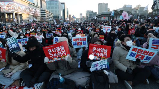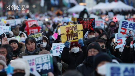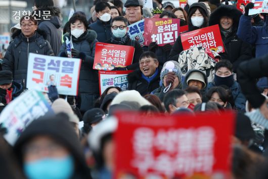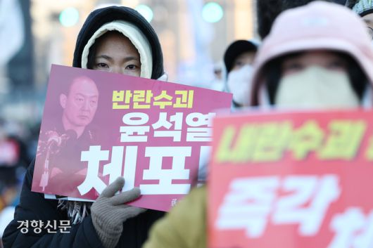 이날 윤석열즉각퇴진·사회대개혁 비상행동은 서울 광화문 동십자각 일대에서 ‘윤석열 즉각 체포•퇴진! 사회대개혁! 6차 범시민총궐기대회’를 열고 “윤석열 측은 체포영장 집행을 거부하겠다는 의사를 명확히 했고, 경호처는 관저 출입로를 차벽과 철조망까지 동원해 봉쇄하며 영장 집행을 적극적으로 가로막고 있다”며 “대통령을 즉각 체포하고 헌법재판소는 파면하라”고 했다.