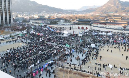 [서울=뉴스핌] 최지환 기자 = 11일 오후 서울 종로구 사직로에서 '윤석열 즉각 퇴진! 사회대개혁! 6차 범시민대행진'이 열리고 있다. 2025.01.11 choipix16@newspim.com