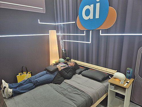(라스베이거스=연합뉴스) 장하나 기자 = 텐마인즈가 미국 라스베이거스 베네시안 엑스포에서 열린 CES 2025에서 '핏 버틀러 ai'를 선보였다고 12일 밝혔다. 사진은 텐마인즈 전시장에서 체험하는 참관객 모습. 2025.1.12