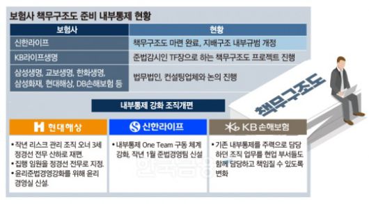 보험사들은 고객과 접점이 많은 만큼 내부통제 뿐 아니라 완전판매에도 힘을 써야하는 상황이다. 올해 책무구조도고 도입에 앞서 보험사들은 관련 조직을 재정비, 강화하는 움직임을 보였다.