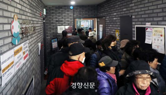 2025년 노인일자리 모집 신청 첫 날인 지난달 5일 서울 동대문시니어클럽에서 어르신들이 일자리 신청을 위해 줄을 서 있다. 서성일 선임기자 |