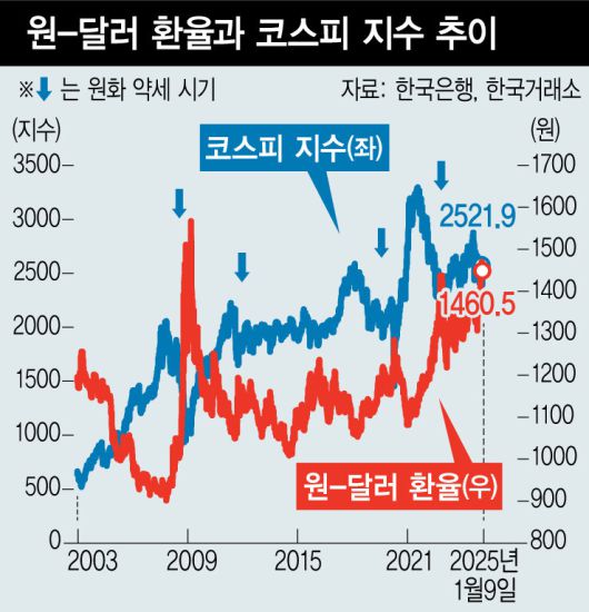 하지만 이번에는 다를 수 있다. 일단 트럼프의 자국 제조업 부흥 정책은 오히려 우리나라 내부 투자 부진으로 이어지고, 보편 관세 부과는 물가 상승 압력으로 작용할 수 있다. 미국 금리 인하 속도 둔화도 달러 강세 압력으로 작용한다. 이에 따른 국내 내수 기업들의 채산성 악화와 소비 부진이 나타날 수 있다. 특히 고환율은 원화 자산 투자에 대한 의지도 약화할 가능성이 크다.