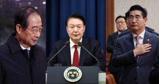 한덕수(왼쪽부터) 국무총리, 윤석열 대통령, 김용현 전 국방부 장관. [뉴시스] |