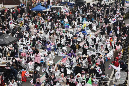(서울=뉴스1) 장수영 기자 = 13일 오전 서울 용산구 한남동 대통령 관저 인근에 윤석열 대통령 지지자들이 탄핵 무효 및 체포 집행 반대 집회를 하고 있다. 2025.1.13/뉴스1presy@news1.krCopyright ⓒ 뉴스1. All rights reserved. 무단 전재 및 재배포, AI학습 이용 금지.