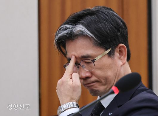 오동운 공수처장이 지난 7일 국회 법제사법위원회 전체회의에 출석해 생각에 잠겨 있다. 성동훈 기자 |