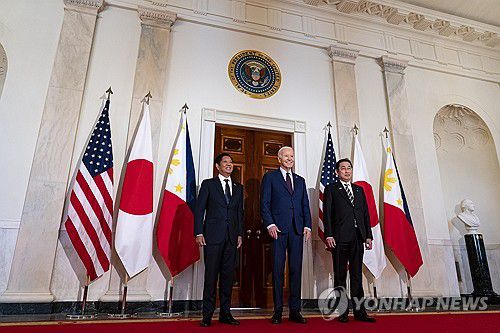 앞서 지난해 4월 바이든 대통령과 기시다 후미오 당시 일본 총리, 마르코스 대통령은 백악관에서 첫 3국 정상회의를 갖고 중국의 남중국해 공세 등에 맞서 3국 안보 협력 강화 등에 합의했다.