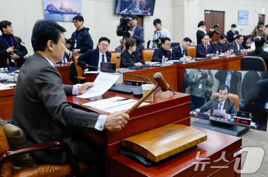 7일 서울 여의도 국회에서 열린 윤석열 정부의 비상계엄 선포를 통한 내란 혐의 진상규명 국정조사특별위원회 2차 회의에서 안규백 위원장이 의사봉을 두드리고 있다. 특위는 내달까지 기관보고 2회, 현장 조사 2회, 청문회 3회를 실시하기로 의결했다. 2025.1.7/뉴스1 ⓒ News1 안은나 기자 |