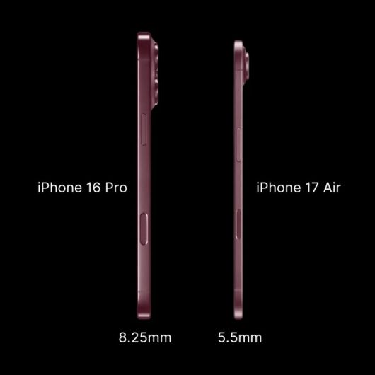 13일 해외 정보기술(IT) 매체들은 최근 애플 전문 분석가 궈밍치의 전망을 인용해 애플이 준비 중인 초박형 모델 아이폰17 에어의 두께가 약 5.5㎜일 것이라고 보도했다. 예측이 맞다면 이 제품은 역대 가장 얇은 아이폰이 된다. 기존 아이폰16 일반·플러스 버전보다 약 30% 더 얇고, 프로·프로맥스보다 33% 더 얇다.