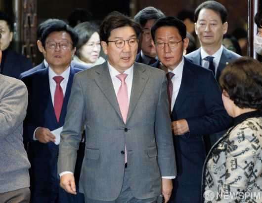 [서울=뉴스핌] 윤창빈 기자 = 권성동 국민의힘 원내대표가 13일 오후 서울 여의도 국회에서 열린 의원총회에 참석하고 있다. 2025.01.13 pangbin@newspim.com