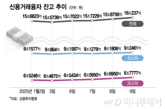 신용거래융자 잔고는 지난해 한 때 20조원을 웃돌기도 했다. 그러나 하반기 증시 약세와 함께 줄어들었다. 특히 지난해 12월3일 비상계엄 사태 발발 후 증시 변동성이 크게 확대되면서 지난 12월12일 15조1632억원까지 하락했다. 이후 조금씩 회복세를 보이던 잔고가 최근 증시 상승과 함께 다시 16조원대를 회복한 것이다.