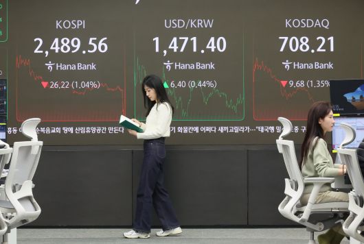 이날 코스피 지수는 전날보다 26.22포인트(1.04%) 내린 2489.56에 거래를 마감했다. 유가증권시장에선 외국인이 8787억원 순매도하면서 지수 하락을 주도했다. 개인은 7465억원, 기관은 253억원 순매수했다.
