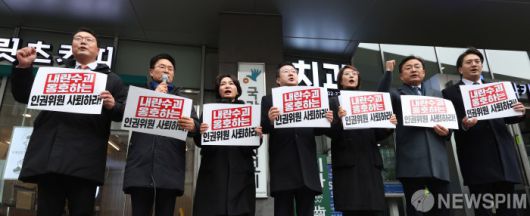 내란수괴 옹호 인권위원 사퇴 외치는 야당 의원들