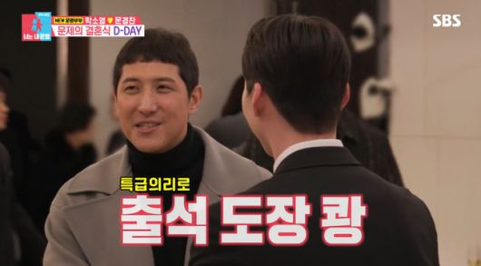 이날 결혼식 공동 사회로 김대희와 김준호가 등장했다. 김대희는 김준호에게 "사회를 볼 자격이 있나"라고 장난을 쳐 웃음을 자아냈다. 박소영, 문경찬은 부부로서 서약을 하며 "진심으로 행복하게 살겠다"라고 말했다. 이 모습을 본 유민상은 "부러운 건 사실이다"라고 말했다.