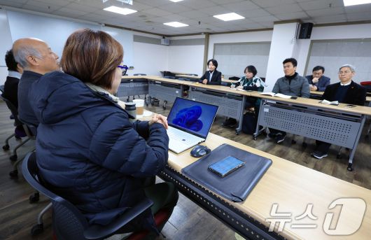 (서울=뉴스1) 박정호 기자 = 윤석열 즉각 퇴진·사회대개혁 비상행동 박석운 공동대표 등이 14일 오전 서울 중구 정동 전국민주노동조합총연맹에서 김재연 진보당 상임대표와 이상현 녹색당 대표, 이백윤 노동당 대표, 권영국 정의당 대표 등 진보정당 관계자들이 간담회를 갖고 있다. 2025.1.14/뉴스1