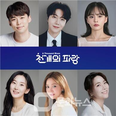 2025 '천 개의 파랑' 캐스팅 - 상단 좌측부터: 윤태호, 진호(펜타곤), 강혜인, 서연정, 효정(오마이걸), 김건혜(사진제공=(재)서울예술단) |