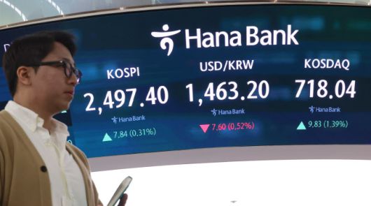 14일 서울 중구 하나은행 본점 딜링룸 현황판에 코스피와 원·달러 환율 등 지수들이 표시되고 있다. (사진=연합뉴스) |