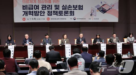 9일 오후 서울 중구 프레스센터에서 대통령직속 의료개혁특별위원회가 주최한 비급여 관리‧실손보험 개혁방안 정책토론회가 진행되고 있다. 보건복지부가 공개한 실손의료보험 개혁안에 따르면 앞으로 출시되는 5세대 실손보험은 비급여 자기부담률이 기존 30%에서 50%까지 확대되고, 보장한도가 기존 5000만 원에서 1000만 원까지 축소될 전망이다. 2024.1.9/뉴스1 ⓒ News1 장수영 기자 |