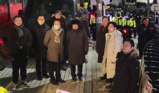 15일 아침 서울 한남동 대통령 관저 인근에서 국민의힘 의원들이 공수처의 체포영장 집행을 과정을 지켜보고 있다. 정용일 선임기자 yongil@hani.co.kr |