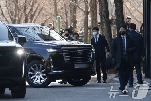 (과천=뉴스1) 김영운 기자 = 내란 우두머리 등의 혐의로 체포된 윤석열 대통령을 태운 차량이 15일 경기도 정부과천청사 고위공직자범죄수사처(공수처)로 들어서고 있다. (공동취재) 2025.1.15/뉴스1