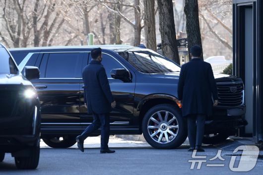 (과천=뉴스1) 김영운 기자 = 내란 우두머리 등의 혐의로 체포된 윤석열 대통령을 태운 차량이 15일 경기도 정부과천청사 고위공직자범죄수사처(공수처)로 들어서고 있다. (공동취재) 2025.1.15/뉴스1
