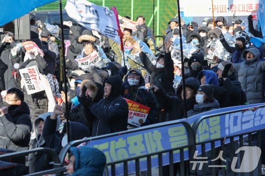 (서울=뉴스1) 신웅수 기자 = 15일 오전 서울 용산구 한남동 대통령 관저 앞에서 윤석열 대통령 체포를 촉구하는 시민들이 윤 대통령 체포 소식을 듣고 환호하고 있다. 2025.1.15/뉴스1phonalist@news1.krCopyright ⓒ 뉴스1. All rights reserved. 무단 전재 및 재배포, AI학습 이용 금지.