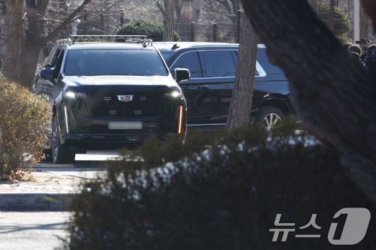(과천=뉴스1) 김영운 기자 = 내란 우두머리 등의 혐의로 체포된 윤석열 대통령을 태운 차량이 15일 경기도 정부과천청사 고위공직자범죄수사처(공수처)로 들어서고 있다. (공동취재) 2025.1.15/뉴스1