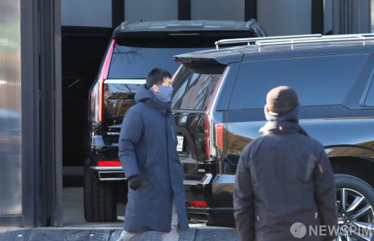 [과천=뉴스핌] 이호형 기자 = 내란 우두머리 등의 혐의로 체포된 윤석열 대통령을 태운 차량이 15일 어잔 경기도 정부과천청사 공수처 차고로 들어가고 있다. 2025.01.15 leemario@newspim.com