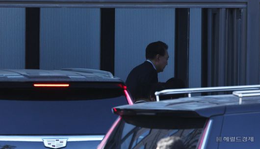 [헤럴드경제(과천)=이상섭 기자] 고위공직자범죄수사처와 경찰로 구성된 공조수사본부에 의해 체포된 윤석열 대통령이 15일 오전 조사를 받기 위해 경기도 정부과천청사 공수처로 들어서고 있다.