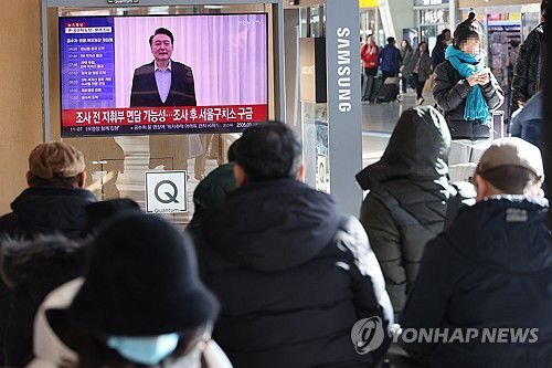 2차 체포영장 집행 관련 뉴스 보는 시민들 |
