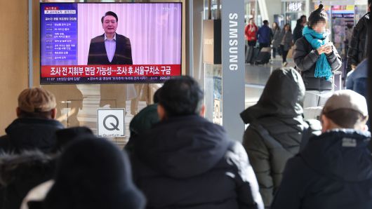 ▲ 고위공직자범죄수사처(공수처)와 경찰이 윤석열 대통령에 대한 2차 체포영장 집행에 나선 15일 오전 서울역에서 시민들이 관련 뉴스를 보고 있다.