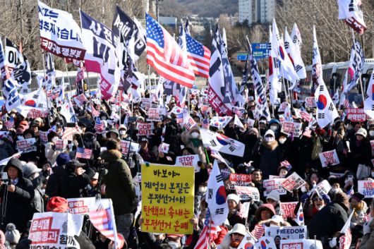 고위공직자범죄수사처(공수처)가 윤석열 대통령을 내란 수괴 혐의로 체포해 조사하고 있는 가운데 15일 경기도 과천시 공수처가 위치한 정부과천청사 앞에서 윤 대통령 지지자들이 시위하고 있다. 과천=권욱 기자 2025.1.15권욱 기자 ukkwon@sedaily.com[ⓒ 서울경제, 무단 전재 및 재배포 금지]