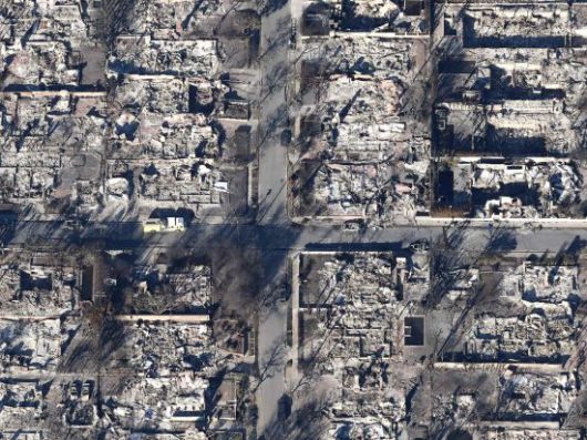 미국 서부 로스앤젤레스(LA) 지역의 대형 산불로 피해를 입은 주택가. 게티이미지연합뉴스 |