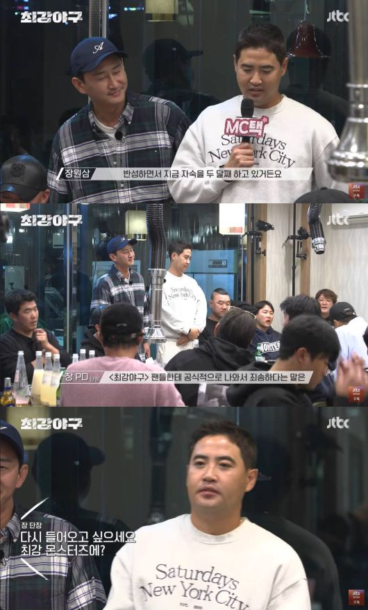 이에 '최강야구' 장시원 PD는 "장원삼 선수가 저희한테개인적으로 죄송하다는 말을 했지만 '최강야구' 팬들에게 공식적으로 죄송하다는 말을 해야 할 것 같아서 나왔다"면서 "자진하차를 했는데 다시 들어오고 싶냐"고 장난스레 물었다. 이에 장원삼은 "들어와야죠"라고 답하며 '최강야구' 복귀를 예고했다.