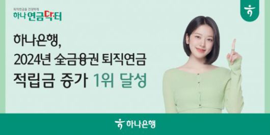 하나은행 연금사업단 관계자는 "하나은행을 믿고 소중한 연금자산을 맡겨주신 손님들의 성원에 힘입어 2년 연속 퇴직연금 적립금 증가 1위라는 놀라운 성과를 이뤄낼 수 있었다"며 "2025년에도 손님들의 풍요롭고 안정적인 인생 2막을 함께 준비하기 위해 하나은행만의 차별화된 상품 구성과 세심한 연금자산관리 서비스로 퇴직연금 시장을 선도해 나가겠다"고 밝혔다.