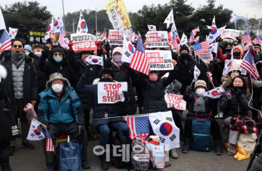 16일 윤석열 대통령이 구금된 경기도 의왕시 서울구치소 앞에서 윤 대통령 지지자들이 집회를 하고 있다.(사진=뉴시스) |